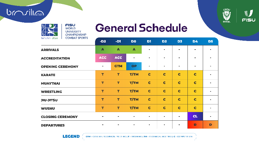 Organised by the Brazilian University Sports Confederation – CBDU and the Brasília 2026 FISU World University Championship Combat Sports Organizing Committee, the event will bring together 1.500 student-athletes from approximately 40 countries.