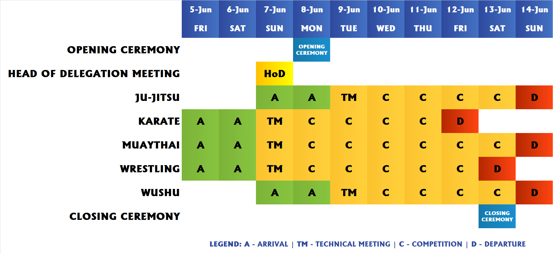 You can find bellow the most updated Competition Schedule available: